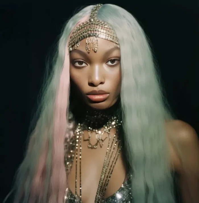Aliya Lou (Brasil). Ailya adalah seniman Jepang-Afro-Brasil, yang fokus pada pasca-fotografi dan pertunjukan. Foto: Fanvue Miss AI