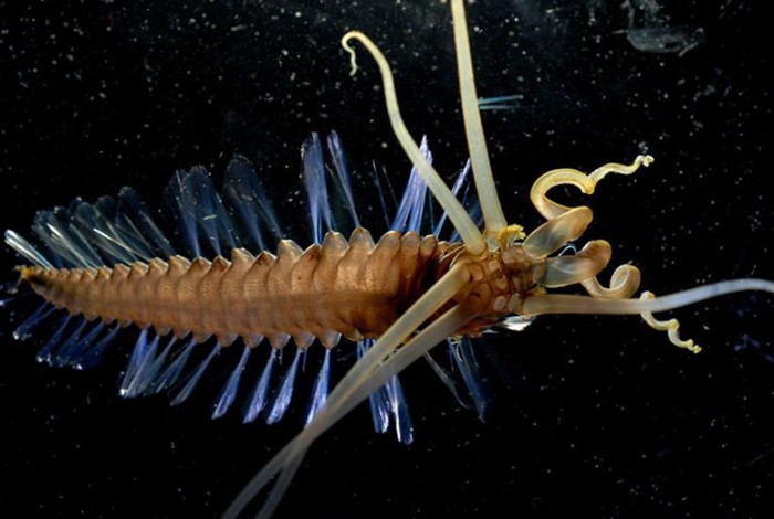 Virus? Alien? Bukan. Ini adalah krustasea isopoda Munnopsis, dan bahkan para ilmuwan belum menemukan lebih dari itu tentang penghuni Samudra Selatan yang dalam ini. Isopoda adalah makhluk purba (mereka telah ada di Bumi, dalam satu bentuk atau lainnya, selama 300 juta tahun atau lebih) tanpa tulang punggung dan memiliki tujuh pasang kaki. Di darat, Anda mungkin mengenal sepupu mereka, kutu pil. (Foto: popularmechanics)