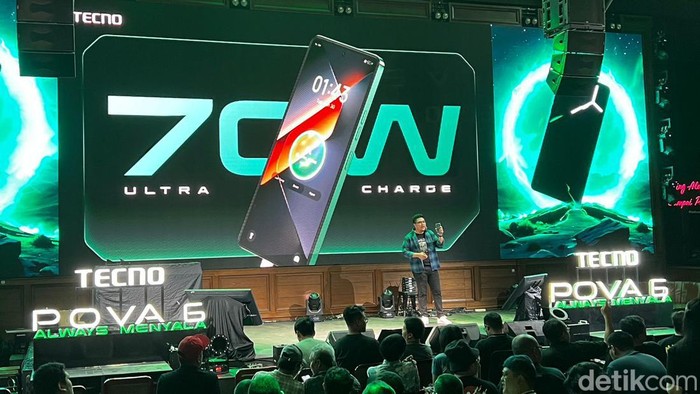 Baterai dan charger adalah aspek yang diunggulan dari Tecno Pova 6. Baterainya 6.000 mAh dengan charger 70W.Β Foto: detikINET/Anggoro Suryo Jati