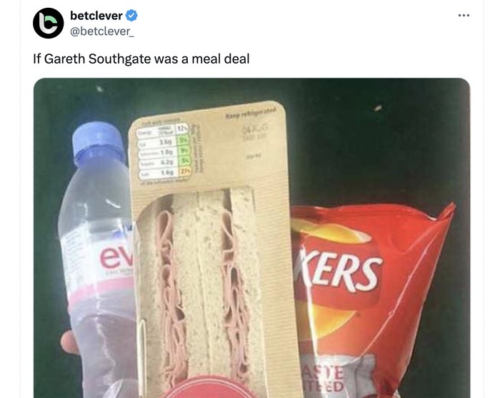 Jika Southgate makanan, pasti sangat membosankan semacam ini. Foto: X.com
