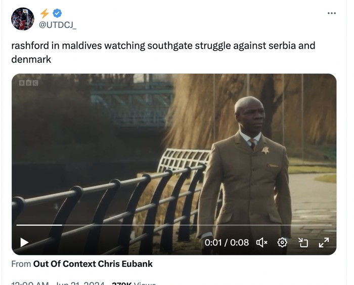 Marcus Rashford pun bersantai sambil melihat Inggris kepayahan. Foto: X.com