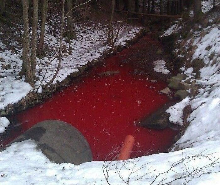Ini pastinya bukan darah dong, ya. Anggap aja itu limbah. Foto: (Bored Panda)