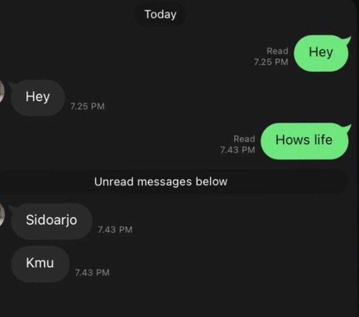 Ditanya kabar jawabnya malah Sidoarjo. Foto: TikTok/hakkasastra