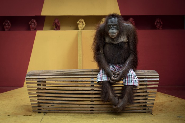 Pada tahun 2004, lebih dari 100 orangutan disita dari Safari World setelah tes DNA membuktikan bahwa mereka dibawa secara ilegal dari Indonesia. Β Namun, dalam beberapa tahun, pertunjukan dimulai dari awal lagi. Untuk memasok Atraksi Wisata Satwa Liar, orangutan muda dicuri dari alam liar, dan induknya dibunuh. Mereka dilatih menggunakan metode yang kejam, seperti pemukulan dan kekurangan makanan. Ketika mereka menjadi terlalu tua, mereka dikurung di dalam kandang selama sisa hidup mereka. Foto: Environmental Photography Award