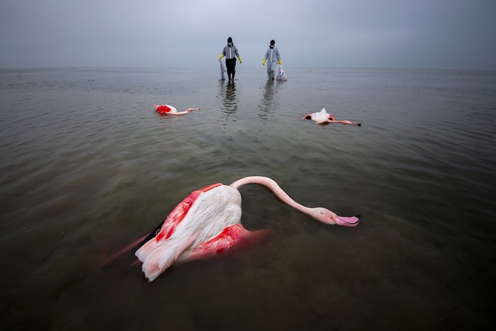 Mehdi ingin membagikan foto ini dengan seluruh dunia untuk menarik perhatian pada nasib tragis hewan-hewan ini dan keadaan lahan basah ini, yang menanggung beban penuh dari perubahan iklim dan dampak dari aktivitas manusia yang merusak. Seperti yang dapat kamu lihat dari gambar, situasi ini memiliki efek mobilisasi, dan di sini kita melihat upaya dua aktivis lingkungan untuk mengumpulkan mayat dan mencegah penyebaran penyakit. Foto: Environmental Photography Award