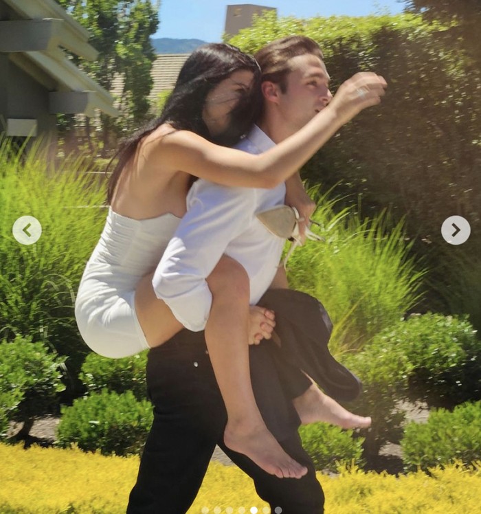 βPacarku, Arthur, memberiku tumpangan setelah upacara,β Phoebe memberi judul gambar dirinya sedang digendong di punggung Arthur. Dia berbagi foto lain dengan pacarnya yang diambil saat pesta kelulusannya malam itu, di mana Phoebe mengenakan gaun sutra biru Tiffany sementara Arthur mengenakan jas biru dan kaos dalam yang serasi. Foto: Instagram