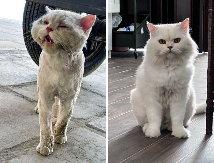 Satu tahun mengadopsi kucing ini dengan penuh perawatan dan cinta yang baik. Foto: Boredpanda