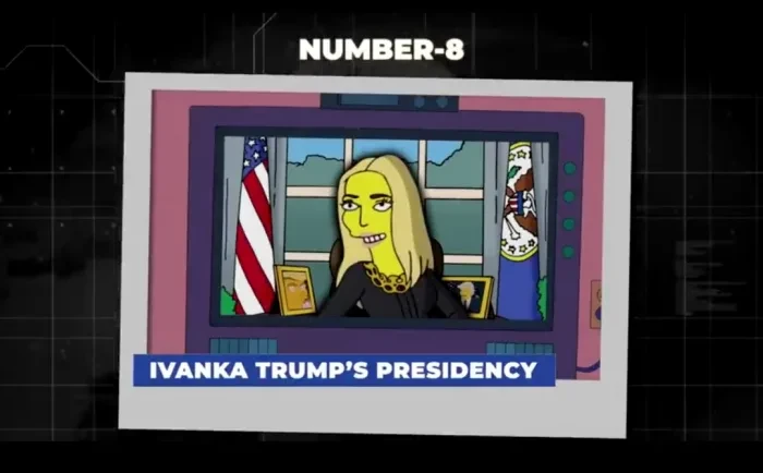 Dalam sebuah episode yang ditayangkan pada Oktober 2016, ada bocoran halus bahwa putri Presiden AS ke-45 Donald Trump, akan mencalonkan diri sebagai presiden. Dalam episode ini, Homer Simpson terlihat mengenakan lencana bertuliskan 'Ivanka 2028'. Foto: BlogAllOut via HubPages