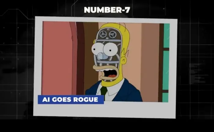 Dalam episode tahun 1994 berjudul 'Itchy and Scratchy Land', keluarga The Simpsons mengunjungi Disneyland versi seram yang sepenuhnya dikelola oleh robot. Ketika itu, robot-robot itu menjadi rusak dan mulai menghabisi semua orang. Cukup bikin ngeri karena kekhawatiran mengenai seberapa jauh kecerdasan buatan akan berkembang masih jadi isu besar. Foto: BlogAllOut via HubPages