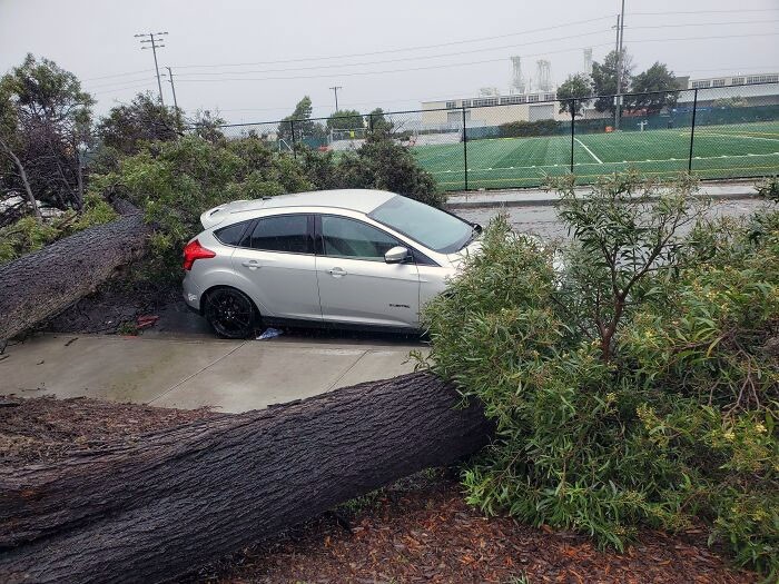 Mobil yang sangat beruntung tidak tertimpa pohon saat badai. Foto: Bored Panda