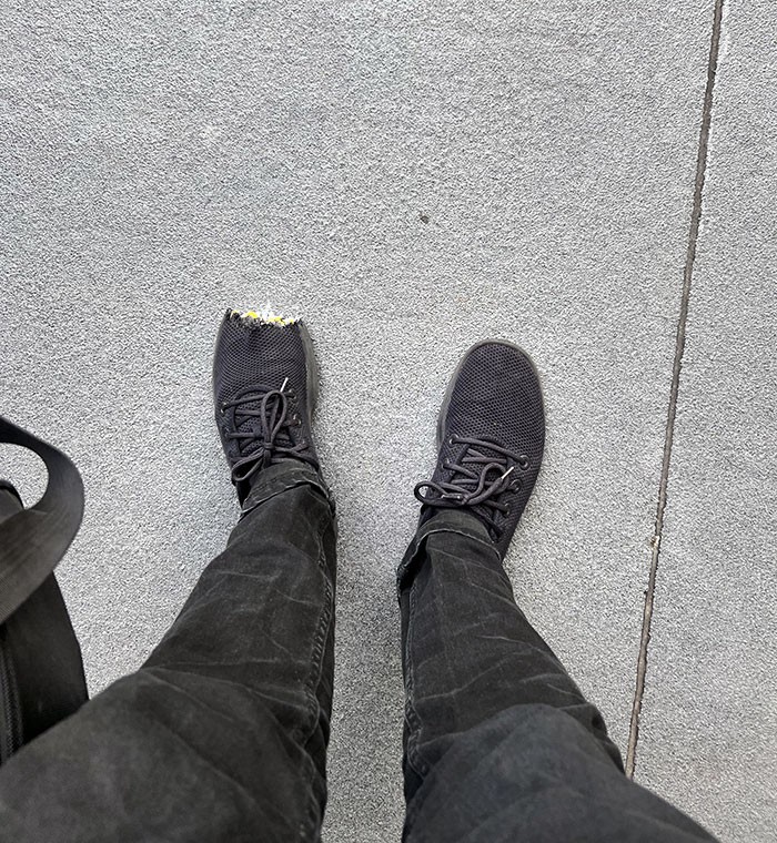 Anting yang hilang ternyata ada di bawah sepatu. Foto: Bored Panda