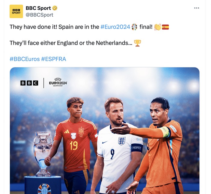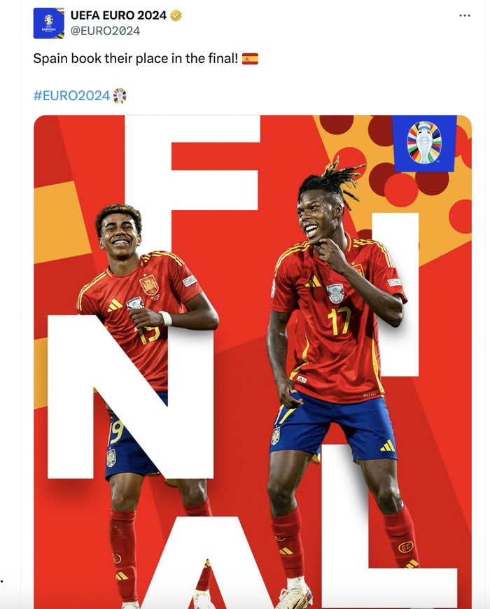 Spanyol pun melangkah ke final Euro 2024. Foto: Twitter