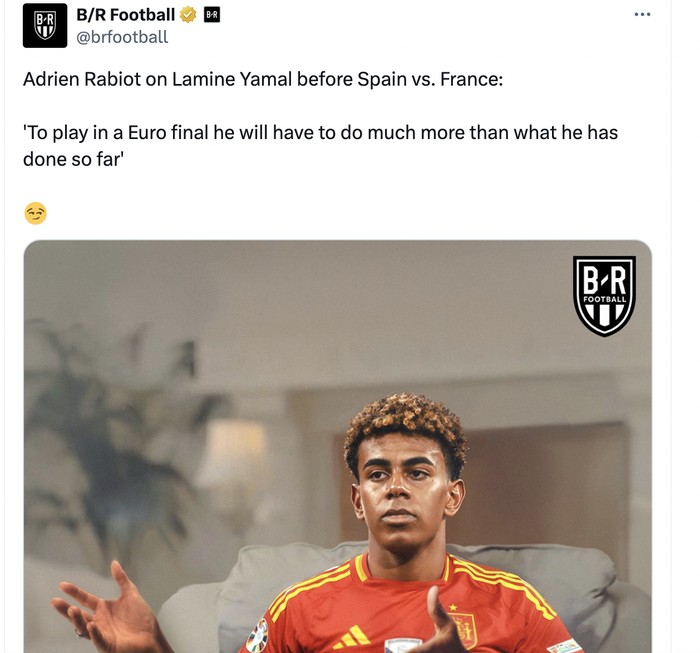 Adrien Rabiot sempat menyebut Lamine belum pantas masuk ke final Euro 2024. Lamine yang tertawa paling akhir. Foto: Twitter