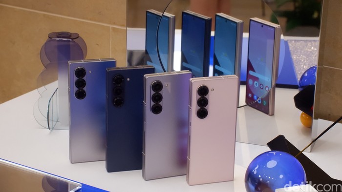 Galaxy Z Fold 6 tersedia dalam warna Silver Shadow, Pink, dan Navy. Pesan secara online melalui Samsung.com untuk mendapatkan Galaxy ZΒ Fold 6 dengan warna-warna eksklusif, seperti Crafted Black dan White Foto: Adi Fida Rahman/detikINET