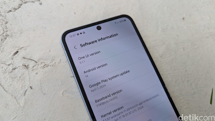 Ponsel ini sudah menjalankan One UI 6.1.1 berbasis Android 14. Update ini membawa banyak fitur AI baru untuk Galaxy Z Flip 6, mulai dari Live Translate untuk aplikasi pihak ketiga, Sketch to Image, Portrait Studio, dan masih banyak lagi. Foto: Virgina Maulita Putri/detikINET