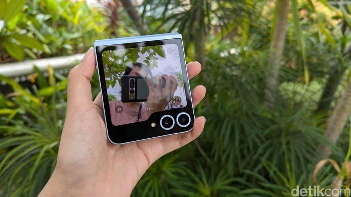 Samsung membenamkan kamera selfie 10 MP di layar utama Galaxy Z Flip 6. Foto: Virgina Maulita Putri/detikINET
