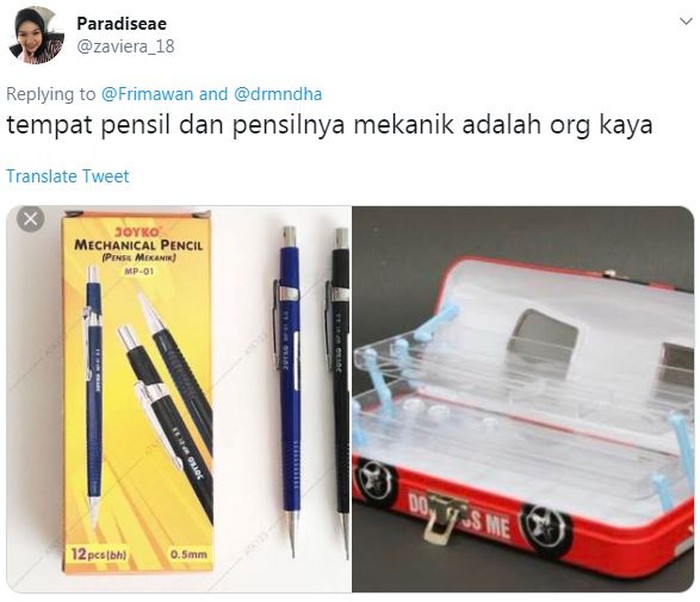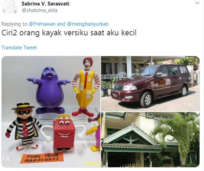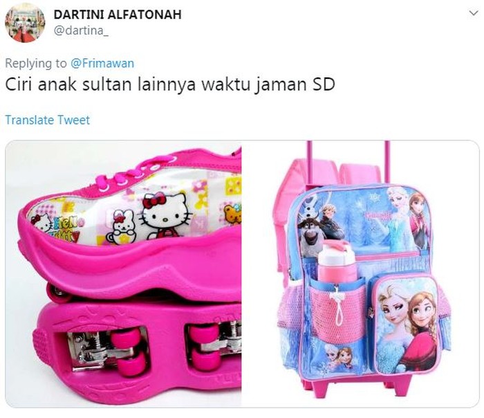 FotoINET Ciri-ciri Orang Kaya di Mata Anak Kecil 90-an, Siapa Sepemikiran? Pool - detikInet Minggu, 14 Jul 2024 06:45 WIB Tautan telah disalin Jakarta - Orang kaya versi anak kecil tahun 1990-an sesimpel disuapin ART sampai punya ayunan di terasnya. Kalau sore-sore keluar bawa otopet, fix orang kaya. Foto: via X/panjipnjk Terus kalau teman-temannya lagi main ke rumah, biasanya suka pada duduk-duduk di ayunan. Foto: viaΒ X/RahmadaniaResi Punya mainan dari resto, mobil dan rumah bertingkat. Foto: via X/shabrina_aida Definisi kaya lainnya, sore-sore disuapin ART. Foto: via X/dannnnnnnnnyyyy Siapa yang waktu kecil kepingin banget punya pensil mekanik? Foto: viaΒ X/zaviera_18 Atau Adinata. Foto: viaΒ X/Fauzanfkr Otomatis langsung banyak temannya. Foto: viaΒ X/3ple8ight Kalau dipikir-pikir, heboh juga ya, ke sekolah pakai sepatu beroda dan tas koper. Foto: viaΒ X/dartina_ Merk sepatu yang sering dipakai anak-anak orang kaya. Foto: Facebook/Mdh Siapa yang kalau sekolah selalu naik mobil jemputan? Pasti rumahnya jauh banget dari sekolah. Foto: viaΒ X/membasahkan (/) TAGS fotoinet orang kaya generasi 90-an LIHAT LAINNYA Tautan telah disalin