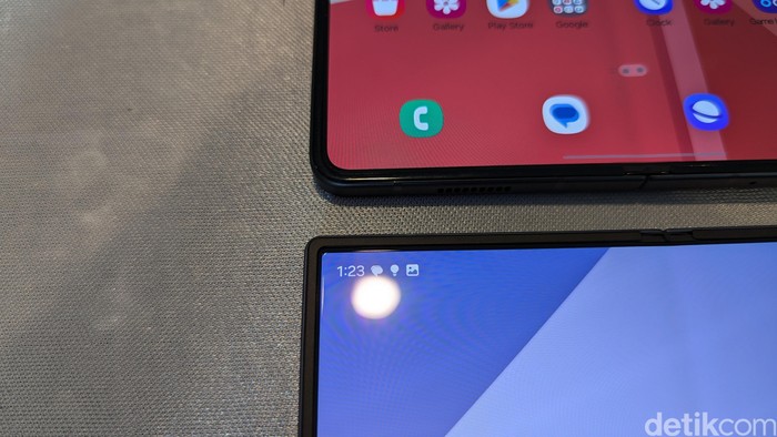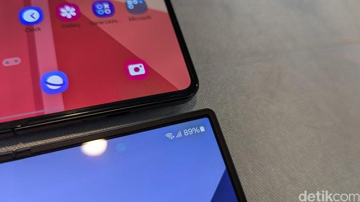 Bezel di layar utama Galaxy Z Fold 6 dibuat lebih rata sehingga membuat ponsel terlihat lebih rapat saat dilipat. Foto: Virgina Maulita Putri/detikINET