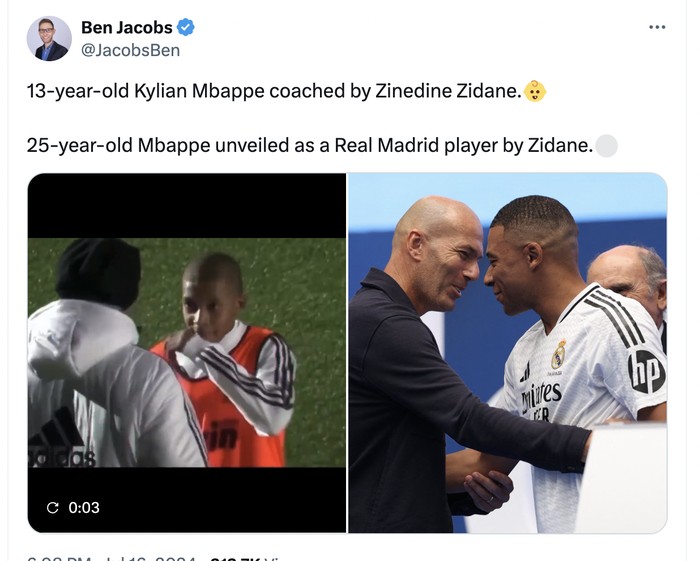 Mbappe usia 13 tahun dilatih Zidane, kini Mbappe usia 25 tahun diperkenalkan sebagai pemain Real Madrid oleh Zidane. Foto: Twitter