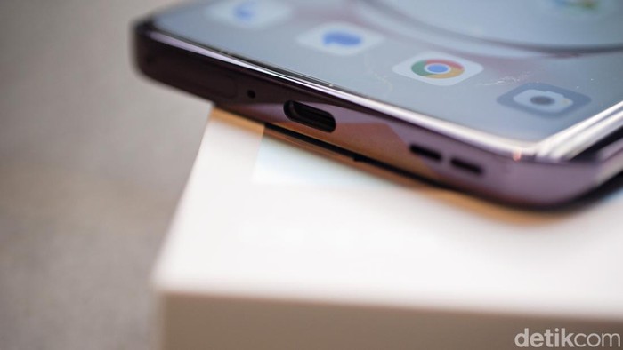 Berbeda dengan versi global yang tidak dibekali charger. Di Indonesia Reno 12 5G masih menyertakan adaptor 80W nbeserta kabel data. Reno12 Series mempertahankan desain tipisnya yang sangat digemari oleh para penggunanya, dengan ketebalan hanya 7,4 millimeter dan berat 180 gram. Foto: Adi Fida Rahman/detikINET
