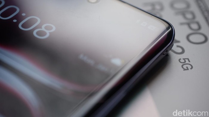 Reno12 5G dilengkapi dengan Corning Gorilla Glass 7i untuk memberikan ketahanan yang lebih baik terhadap jatuh, goresan, dan tekukan, menjadikannya salah satu layar yang paling tahan lama di kelasnya.Untuk mengatasi masalah benturan dan jatuh yang mungkin dialami selama bertahun-tahun penggunaan, oto: Adi Fida Rahman/detikINET