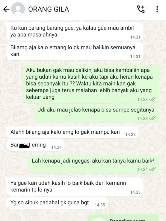 Ketika ditelepon, tidak mau diangkat. Foto: TikTok/ibukost36pintu_