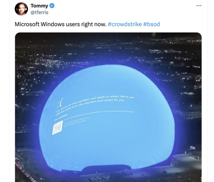 Kubah wahana Spheres di Las Vegas pun digambarkan kena blue screen of death. Foto: Twitter
