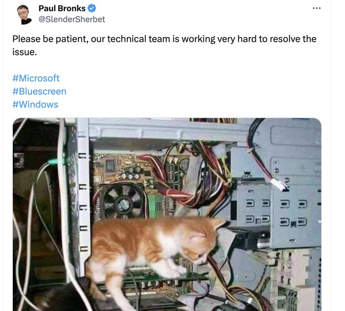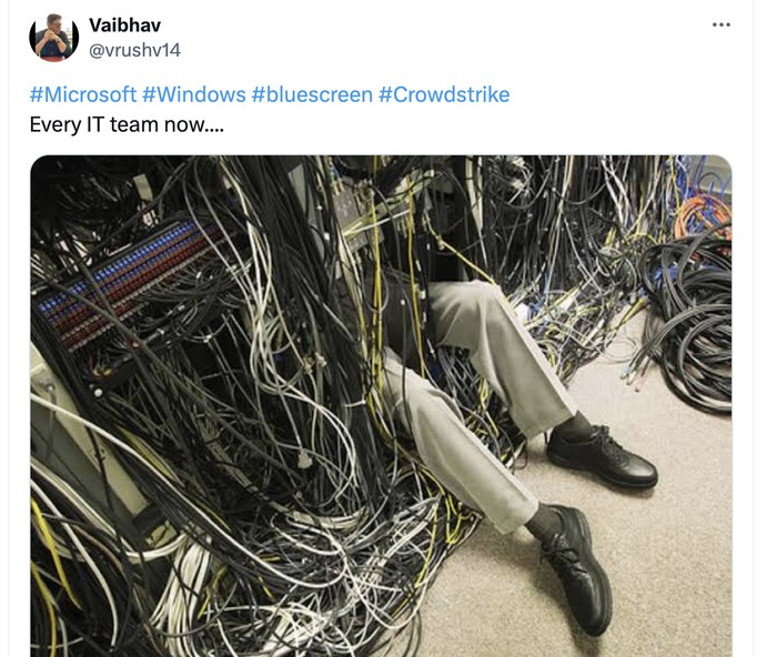 Divisi IT di banyak perusahaan pun jadi sibuk mencoba memperbaiki. Foto: Twitter