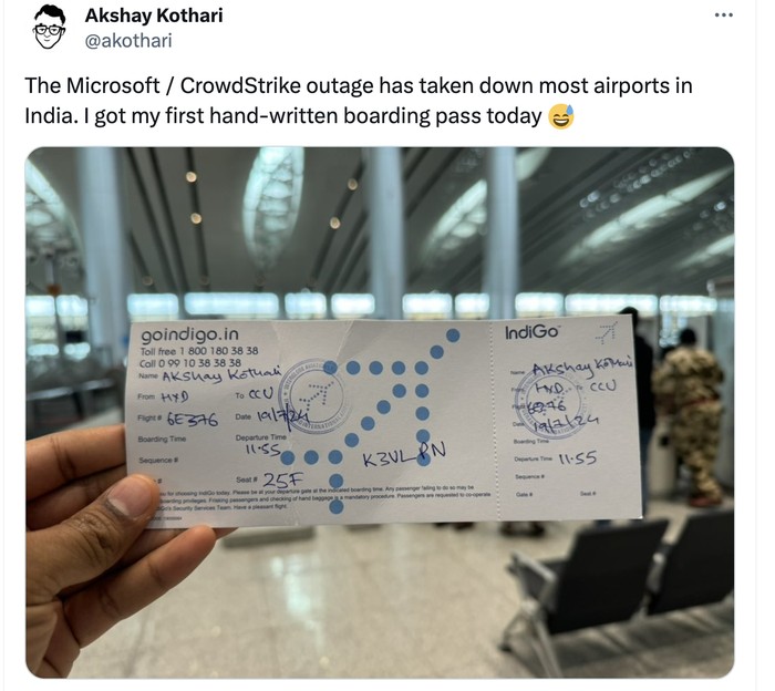 Bandara banyak terdampak, boarding pass pun sampai ditulis manual. Foto: Twitter