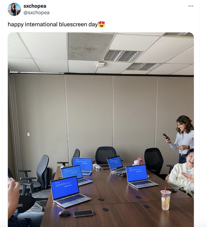 Di perkantoran, banyak laptop terdampak Blue Screen of Death di Windows. Foto: Twitter