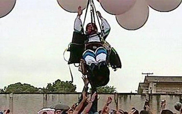 Adelir AntΓ΄nio de Carli, seorang pendeta asal Brasil, berusaha memecahkan rekor dunia baru dengan terbang menggunakan 600 balon helium selama lebih dari 19 jam. Setelah kepergiannya, dia tidak pernah terlihat lagi. Meskipun ada spekulasi awal bahwa dia mungkin selamat dari pendaratan darurat, harapan ini pupus ketika potongan tubuhnya ditemukan terdampar di pantai dua bulan kemudian. Foto: Brightside