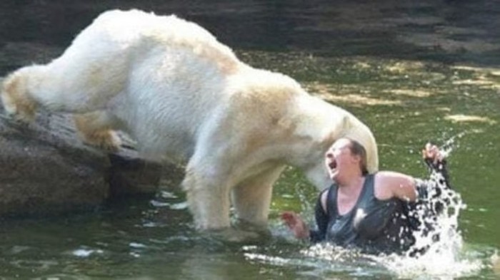 Pada tahun 2009, seorang wanita melompat ke kandang beruang kutub di Kebun Binatang Berlin. Menurut mantan suaminya, wanita tersebut menderita depresi dan pengangguran. Dipercaya bahwa ini adalah upaya bunuh diri. Untung nyawanya selamat, pun begitu dia musti menghadapi tuntutan dari pihak kebun binatang karena melanggar ketertibanΒ dan merusak reputasi mereka. Foto: Brightside