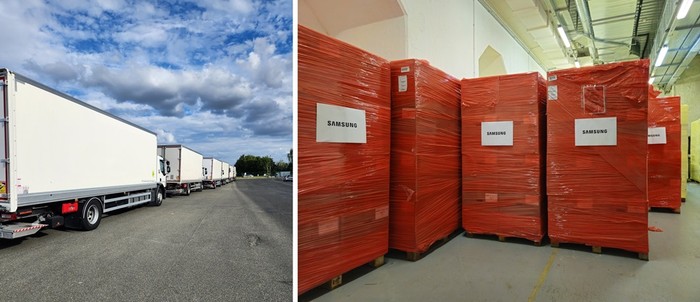 Hampir 17.000 unit Samsung Galaxy Z Flip6 Edisi Olimpiade tiba di Paris 2024 Olympic and Paralympic Village melalui program transportasi yang berdedikasi dan terkoordinasi secara khusus, untuk siap didistribusikan ke semua atlet yang berkompetisi di Paris 2024. Foto: Samsung