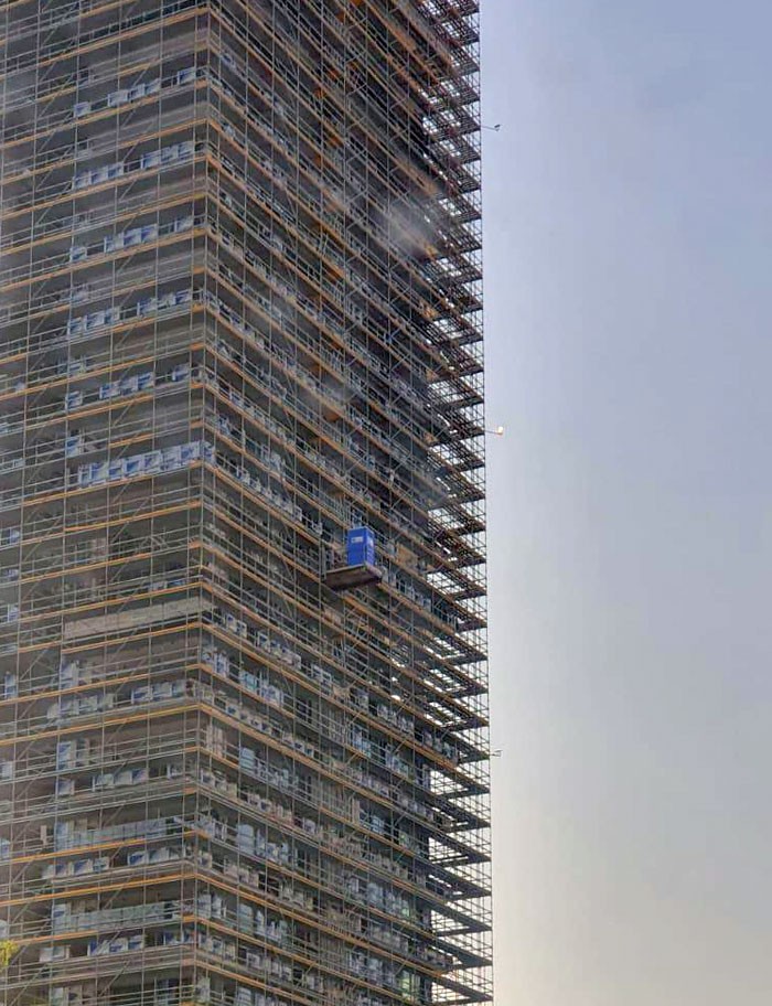 Pekerja ini terjebak di lubang poros lift. Β Foto: Reddit via Boredpanda