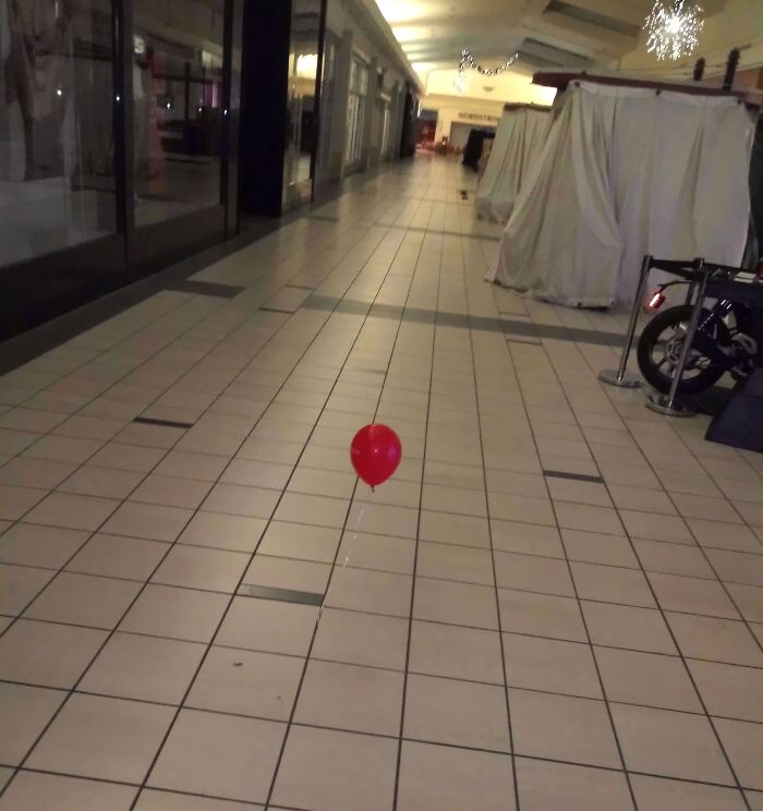 Bayangkan kamu kerja di mal dan menemukan balon di saat patroli di tengah malam. Foto: Reddit via Boredpanda