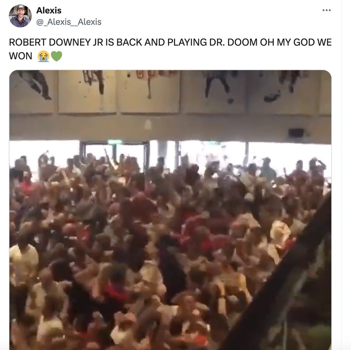Bersorak gembira karena RDJ kembali dan memerankan Dr Doom. Foto: Twitter