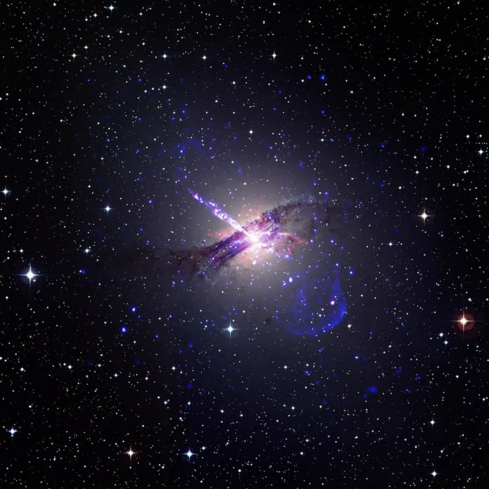 Centaurus A memiliki lubang hitam supermasif di pusatnya yang mengirimkan jet besar ke luar angkasa, yang terdeteksi oleh Chandra. Kredit: Sinar-X: (Chandra) NASA/CXC/SAO, (IXPE) NASA/MSFC; Optik: ESO; Pemrosesan Gambar: NASA/CXC/SAO/K. Arcand, J. Mayor, dan J. Schmidt Foto: NASA