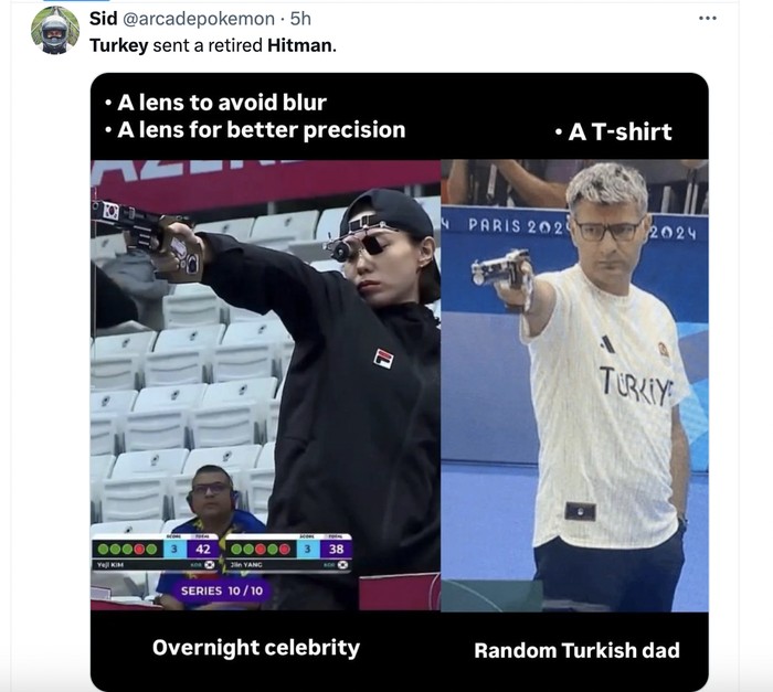 APakah Turki mengirimkan bapak-bapak random? Penampilan Yusuf sangat berbeda dengan penembak Korea Selatan. Foto: X.com