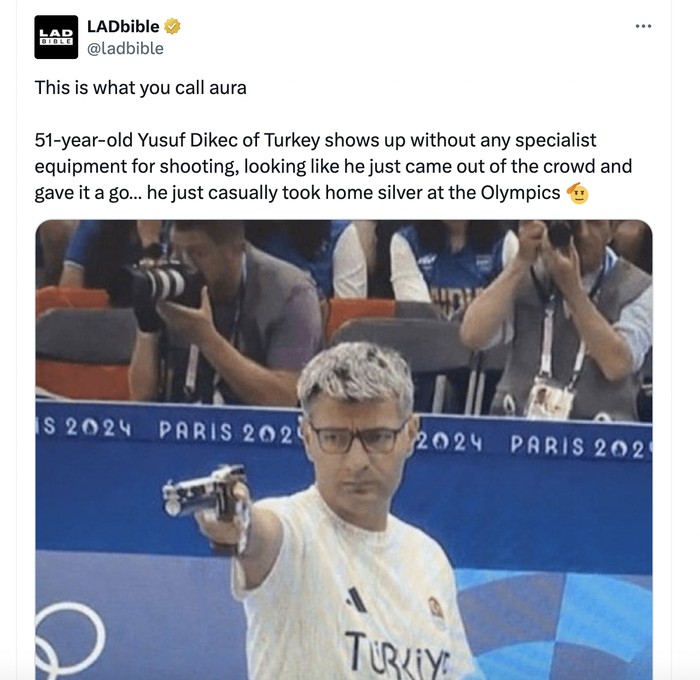 Inilah yang disebut aura. Dia tampil tanpa perangkat istimewa, seperti diambil dari kerumunan dan meraih medali perak. Foto: X.com