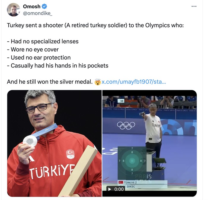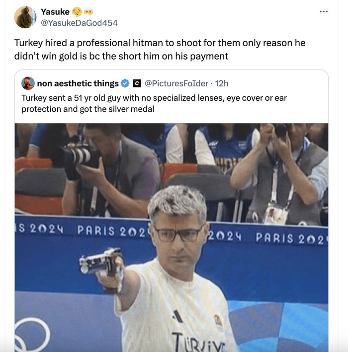 Turki menyewa pembunuh bayara profesional untuk menembak dan satu-satunya alasan dia tidak mendapat emas adalah karena bayarannya kurang. Foto: X.com
