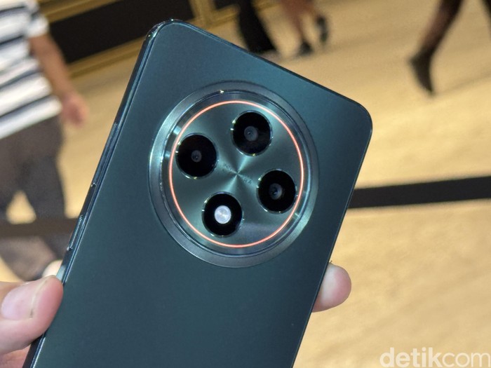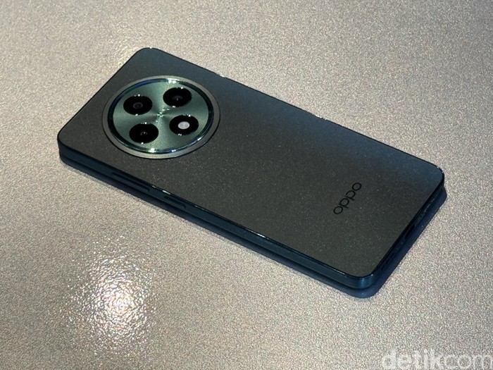 Reno 12 F versi 4G maupun 5G tidak berbeda tampilannya. Keduanya mengusung desain Cosmos Ring di bagian belakangnya terinspirasi jam tangan premium. Oppo mengaplikasikan struktur All-Round Armour dengan desain Sponge Bionic Cushionina. Memadukan layar kaca diklaim canggih dan High-Strength Alloy Framework untuk melindungi perangkat dari guncangan. Foto: Adi Fida Rahman/detikINET