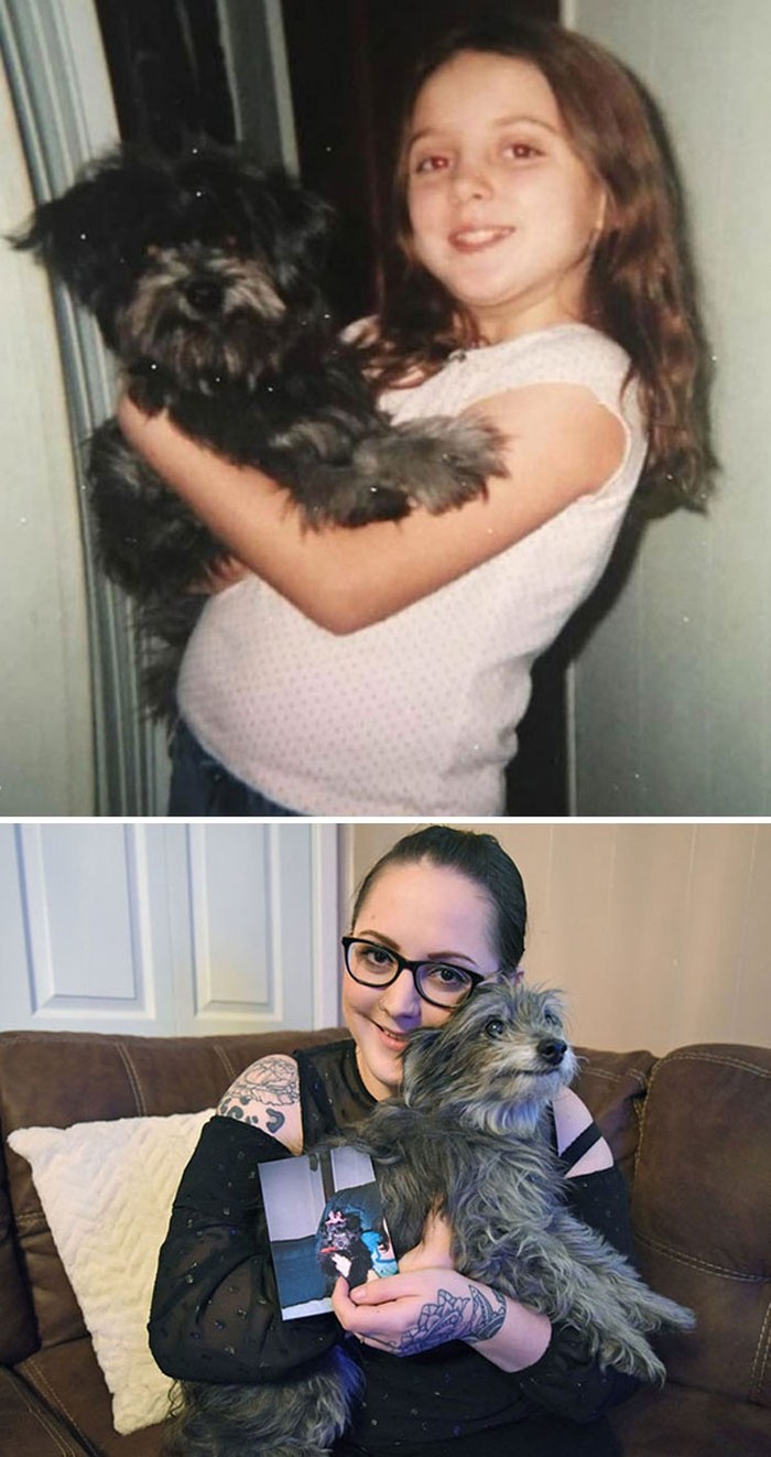 Wanita ini mengadopsi seekor anjing tua yang ternyata adalah anjing yang sama yang dia miliki saat kecil. Pemindaian microchip mengonfirmasi identitas anjing itu. Foto: Bored Panda