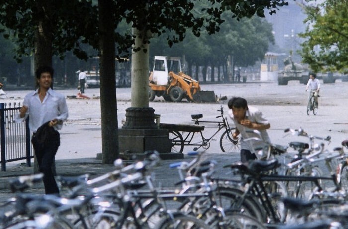 Lihat pria di latar belakang kiri atas. itu Tank Man dari pembantaian Lapangan Tiananmen. Foto ini diambil beberapa menit sebelum foto ikonis dipotret. Foto: dok Bored Panda