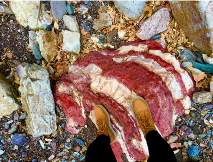 Itu batu yang sedang diinjak, bukan daging bacon. Foto: Reddit