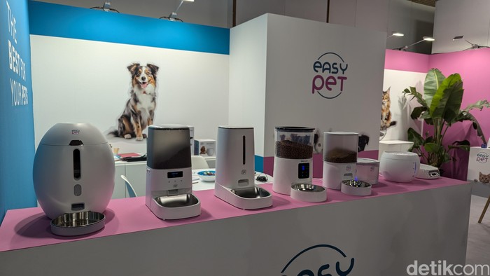 Tidak hanya perangkat teknologi untuk manusia, ada juga yang memamerkan mesin pemberi makan otomatis untuk hewan peliharaan. Foto: Virgina Maulita Putri/detikINET