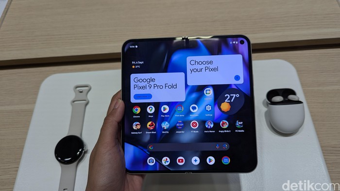 Ada juga ponsel layar lipat Pixel 9 Pro Fold dan perangkat wearable seperti Pixel Buds Pro 2 dan Pixel Watch 3. Foto: Virgina Maulita Putri/detikINET