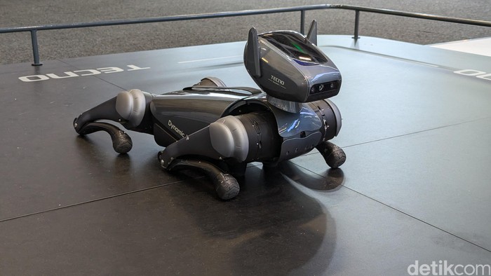 Di booth Tecno tidak hanya menampilkan ponsel, laptop, dan tablet tapi juga ada robot anjing mirip Spot dari Boston Dynamics. Foto: Virgina Maulita Putri/detikINET