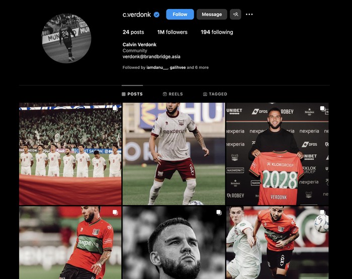 Untuk mengetahui daftar ini, detikINET mengambil pemain yang dipanggil untuk kualifikasi Piala Dunia 2026 lawan Arab Saudi dan Australia. Jumlah followers ini terhitung sampai Minggu sore (8/9). Pertama, ada Calvin Verdonk. Foto: Screenshot