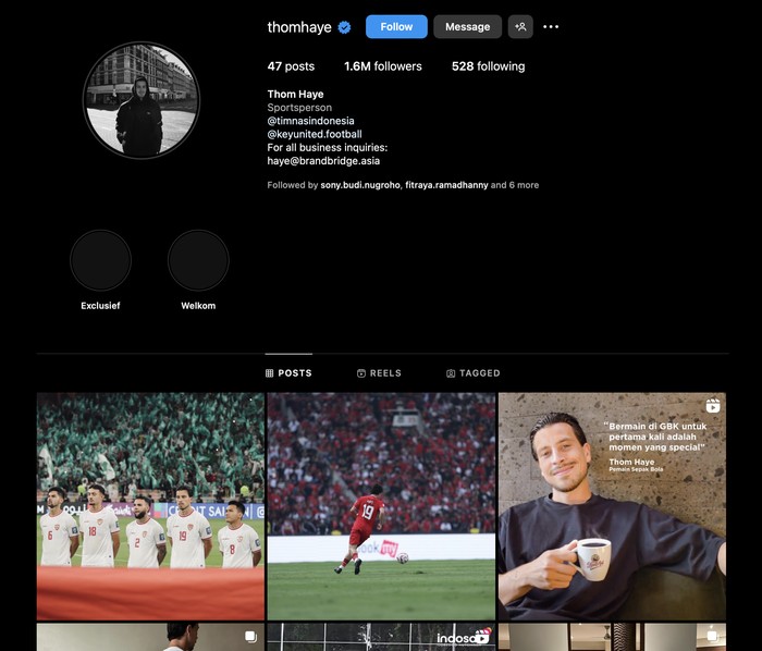Thom Haye dengan 1,6 juta followers. Foto: Screenshot