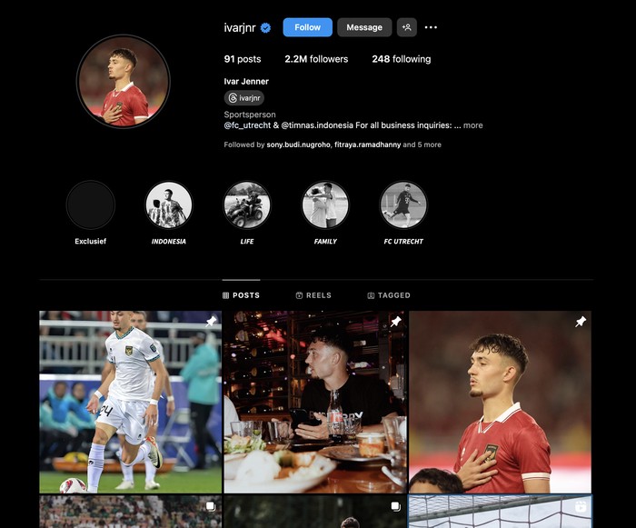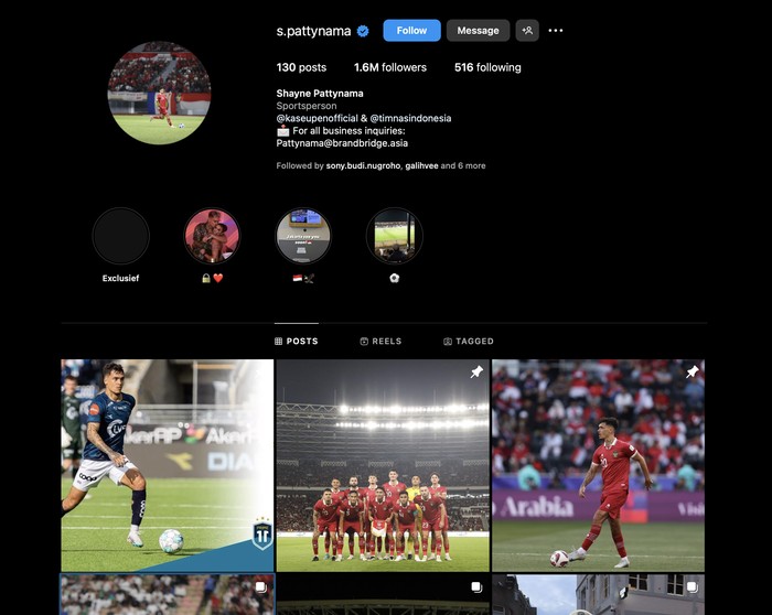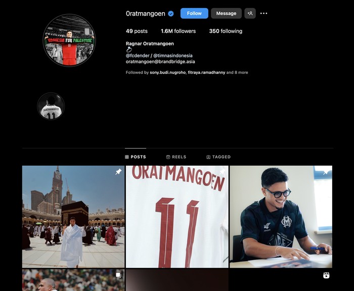 Sejauh ini Pratama Arhan sebagai pemain Timnas Indonesia yang paling banyak followers di Instagram sebanyak 8,8 juta pengikut. Foto: Screenshot